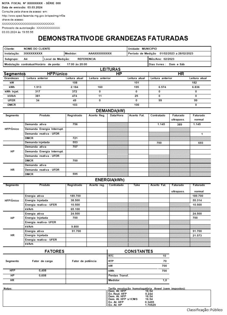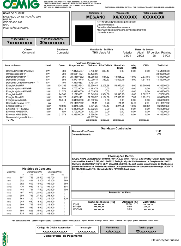 Indica a demanda contratada ativa e disponibilizada pela Cemig no ponto de conexão. Na tarifa azul são contratadas duas demandas.