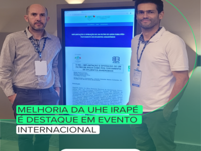 Trabalho sobre melhoria do sistema de tratamento de esgotos da UHE Irapé é apresentado em evento internacional Entre os dias 28 e 30 de agosto, representantes da UHE Irapé participaram do XXI Simpósio Luso Brasileiro de Engenharia Sanitária e Ambiental, evento promovido pela Associação Brasileira de Engenharia Sanitária e Ambiental, em parceria com as associações portuguesas de recursos hídricos e engenharia sanitária e ambiental. O evento qu...