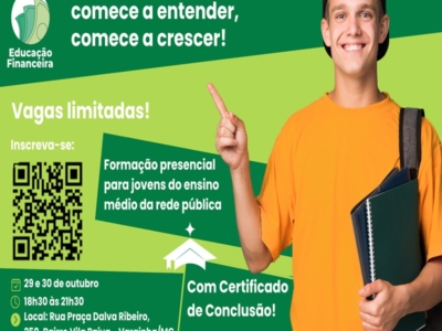 Cemig oferta curso gratuito sobre educação financeira em Varginha Estão abertas e seguem até a próxima sexta-feira (24/10) as inscrições do curso gratuito que a Cemig está oferecendo para os estudantes de escolas públicas de Varginha. A iniciativa gratuita faz parte do programa de voluntariado da Companhia. Nesta edição, as aulas vão trabalhar com a temática da Educação Financeira e são voltada...