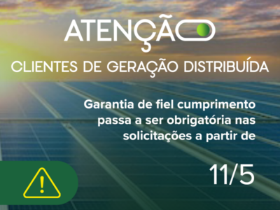 MUDANÇA NAS REGRAS PARA MINIGERAÇÃO DISTRIBUÍDA O consumidor interessado em implantar minigeração distribuída com potência instalada superior a 500 kW deve apresentar à distribuidora a garantia de fiel cumprimento na ocasião do protocolo da solicitação de orçamento de conexão. Portanto, a Cemig Distribuição informa que todos os clientes que se enquadram no comando regulatório s...