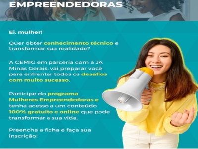 Cemig abre inscrições para curso online e gratuito sobre empreendedorismo feminino O Programa Você – Voluntariado Cemig vai promover a 2ª edição 2023 do projeto “Mulheres Empreendedoras online”, com a metodologia da Junior Achievement – JA Minas Gerais. A formação, que é gratuita, é uma ótima chance para o público feminino participar, de forma online e segura, de um processo empoderador e que pode criar div...