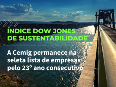 Cemig é incluída na lista do Índice Dow Jones de Sustentabilidade pelo 23ºano consecutivo A Cemig é a única empresa do setor elétrico das Américas a ser listada, juntamente com oito outras empresas do setor, todas europeias, no Índice Dow Jones de Sustentabilidade (DJSI World 2022/2023), divulgado na sexta-feira (09/12), em Nova York. Com base na análise de desempenho dos pilares de sustentabilidade, o DJSI lista as empresas ...