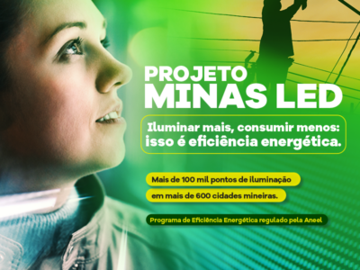 Cemig moderniza iluminação pública de municípios mineiros por meio do projeto Minas LED A Cemig irá substituir luminárias de iluminação pública de maior potência por luminárias LED em municípios localizados em sua área de concessão, por meio do projeto Minas LED. Trata-se de um investimento de mais de R$ 112 milhões, em uma iniciativa do Programa de Eficiência Energética (PEE) da Cemig, regulado pela Agência Naciona...