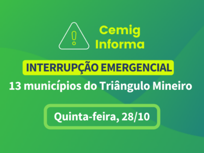 Cemig conclui trabalho de recuperação das torres atingidas por vendaval no Triângulo Publicado em 27/10, às 14h Cemig conclui trabalho de recuperação das torres atingidas por vendaval no Triângulo A Cemig informa que vai realizar interrupção emergencial para os clientes de 13 municípios do Pontal do Triângulo Mineiro nesta quinta-feira, 28 de outubro, em dois momentos: uma primeira às 7 horas da manhã e outra às 15 ...