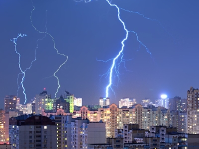 Descargas atmosféricas: entenda os perigos dos raios e saiba como se proteger Crédito da foto: iStock Os raios atingem diretamente a rede elétrica ou suas proximidades, principalmente em lugares descampados e altos, causando o aumento da tensão. Essa sobretensão se propaga na rede até que haja um ponto com passagem para a terra. Para a proteção das edificações, é necessária a utilização de para-raios de aco...