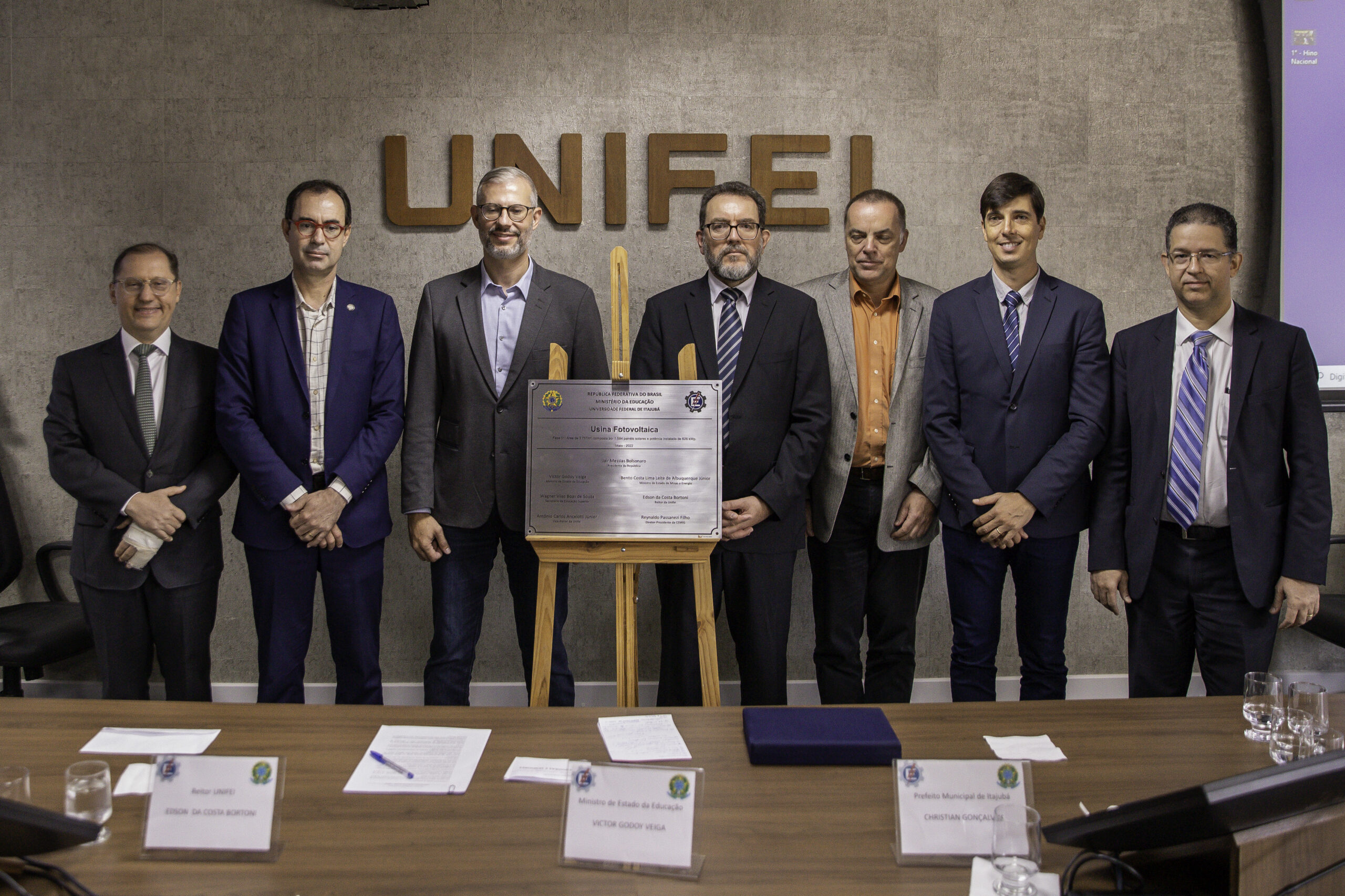 O diretor-presidente da Cemig, Reynaldo Passanezi Filho, participou na manhã de terça-feira (03/05), na Universidade Federal de Itajubá (UNIFEI), no Sul de Minas, de uma cerimônia que marcou a celebração de investimentos feitos e avanços alcançados na pesquisa, no desenvolvimento e na utilização de energias renováveis pela instituição. O reitor da UNIFEI, Prof. Edson da Costa Bortoni, e o ministro da Educação, Victor Godoy, participaram da cerimônia. Entre os destaques da agenda estavam a inauguração da usina fotovoltaica, instalada no campus da universidade, além do início da implantação do Laboratório de Hidrogênio Verde e visita às obras do Centro Tecnológico para o Pré-Sal, também abrigados no local.